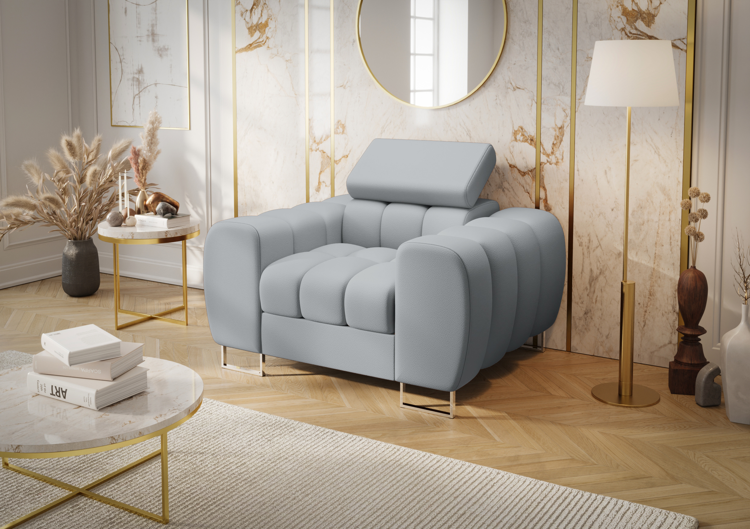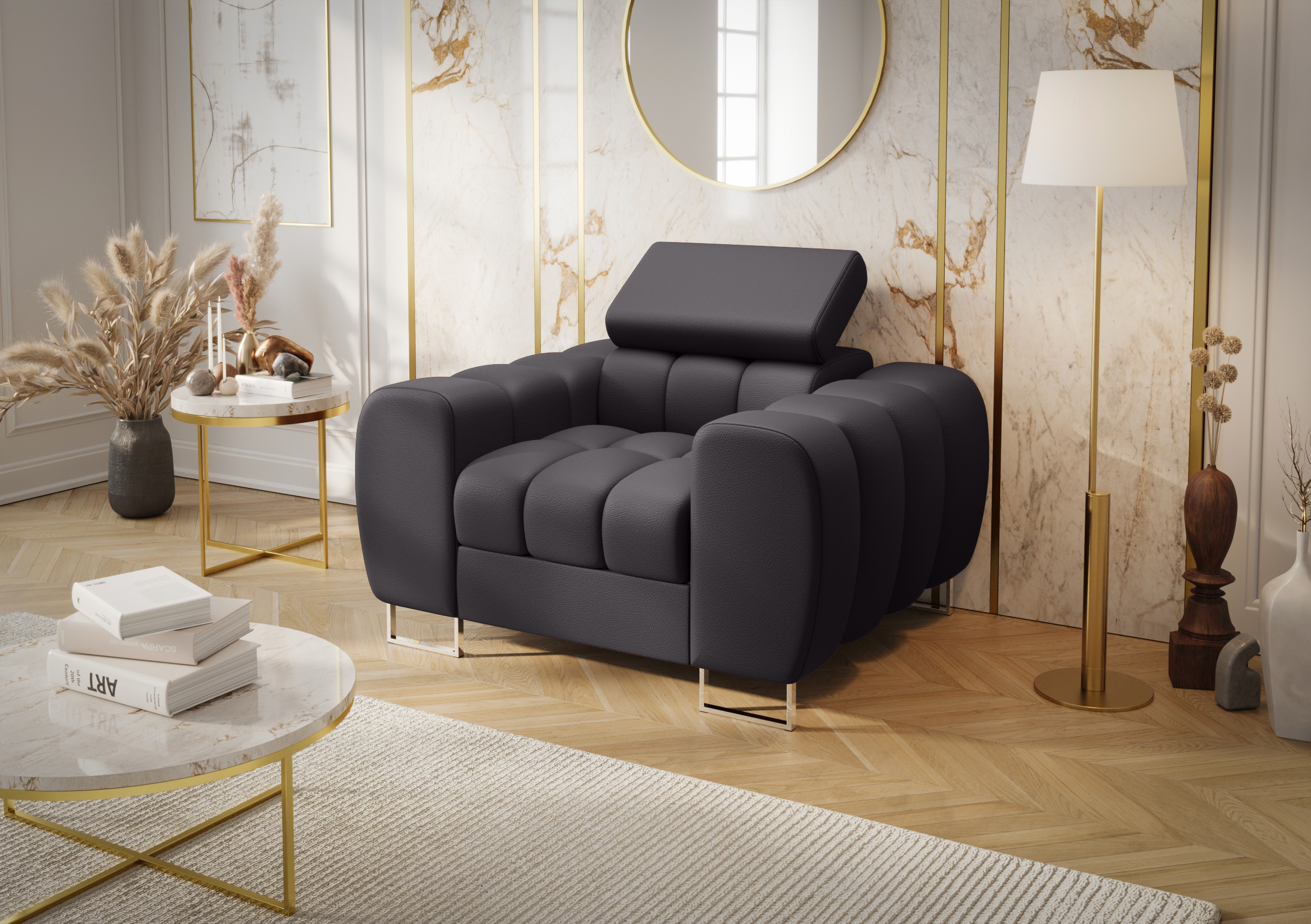 Dzięki nowoczesnemu wzornictwu oraz klasycznej kolorystyce, którą możesz dowolnie dopasować do własnych preferencji, fotel Aspen z łatwością odnajdzie się w różnych aranżacjach wnętrz. Co więcej, jego elegancka forma sprawia, że wnętrze zyskuje wyjątkowy, a zarazem luksusowy charakter. Dzięki temu fotel doskonale prezentuje się zarówno jako uzupełnienie sofy z tej samej kolekcji, jak również jako samodzielny element wyposażenia salonu, gabinetu lub strefy relaksu.