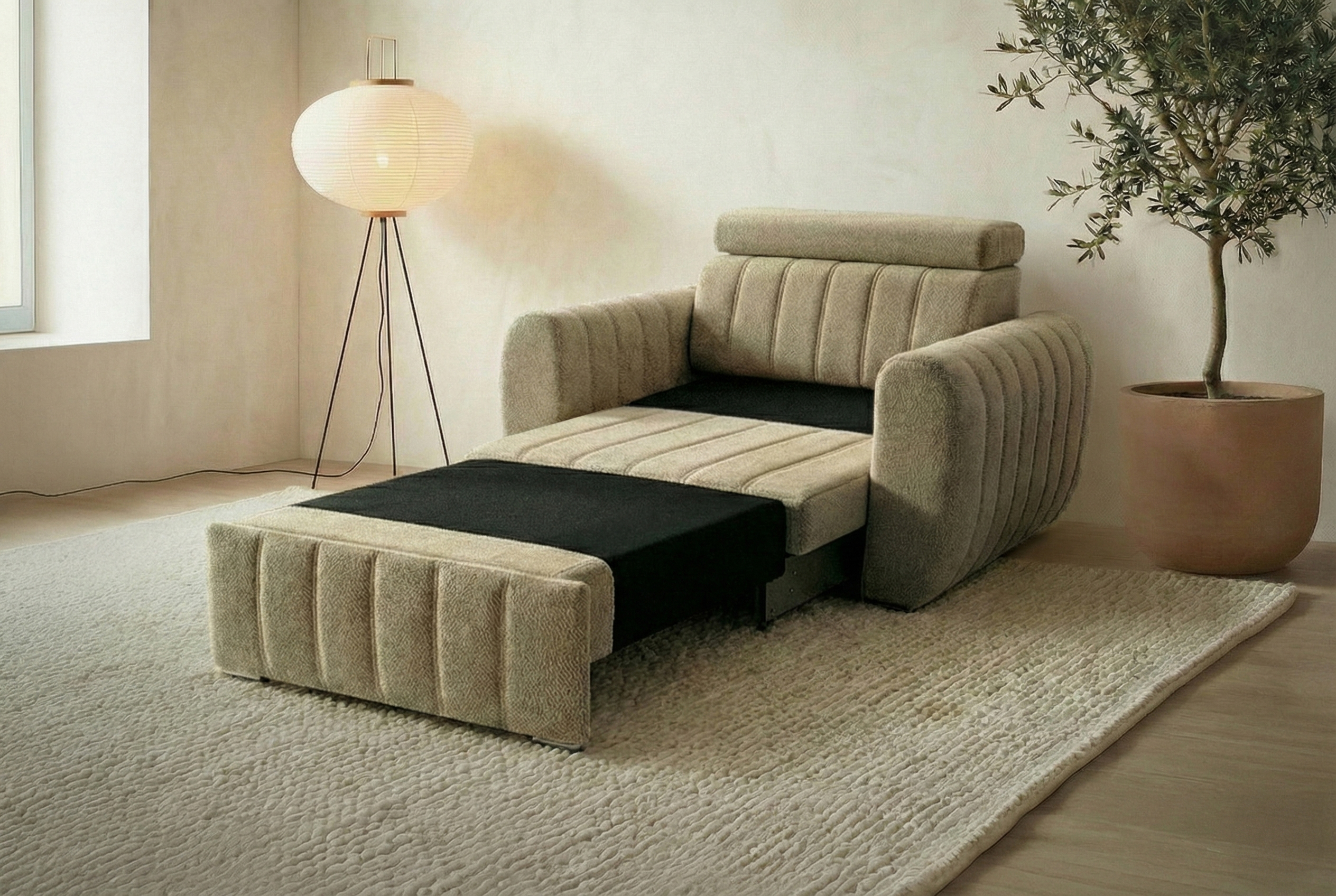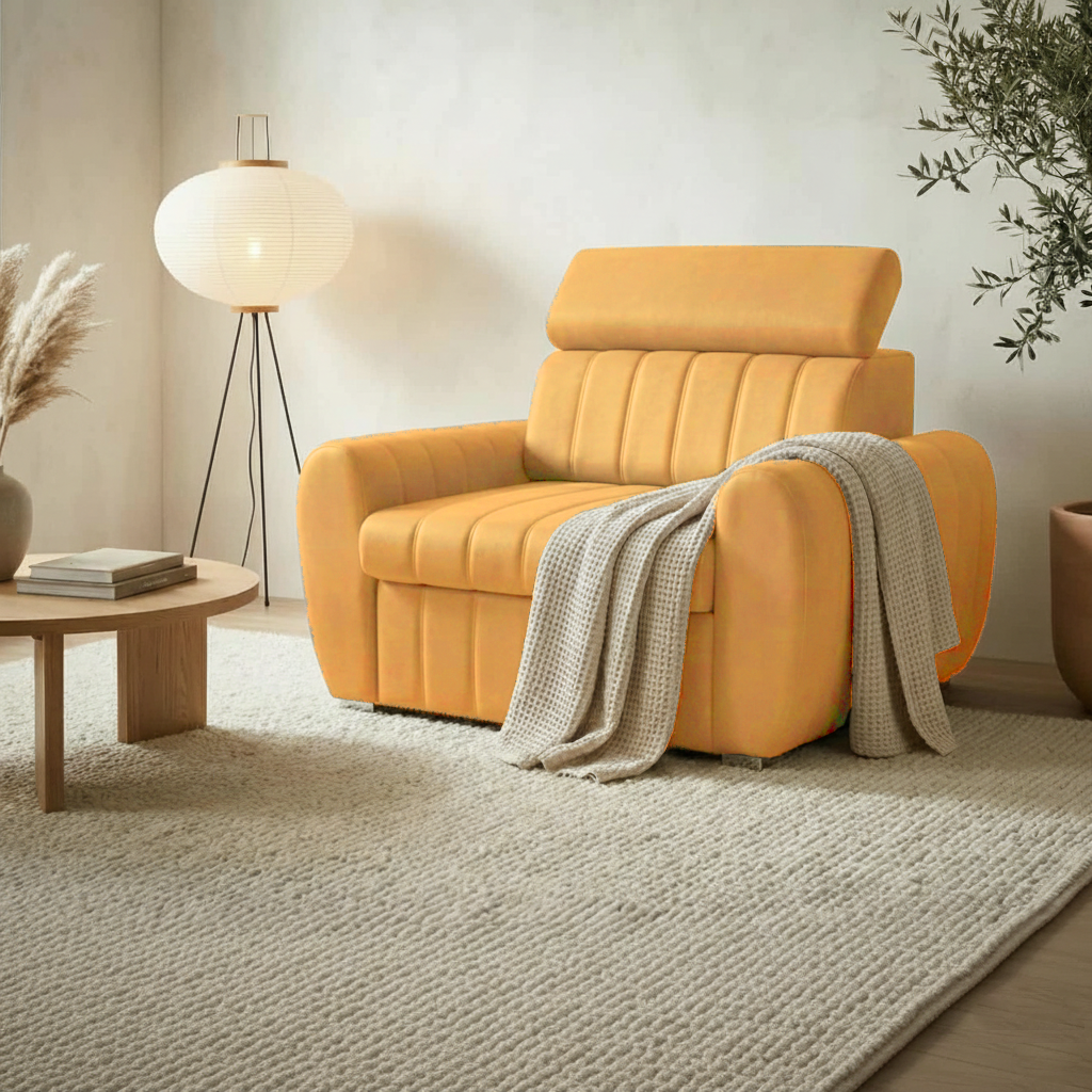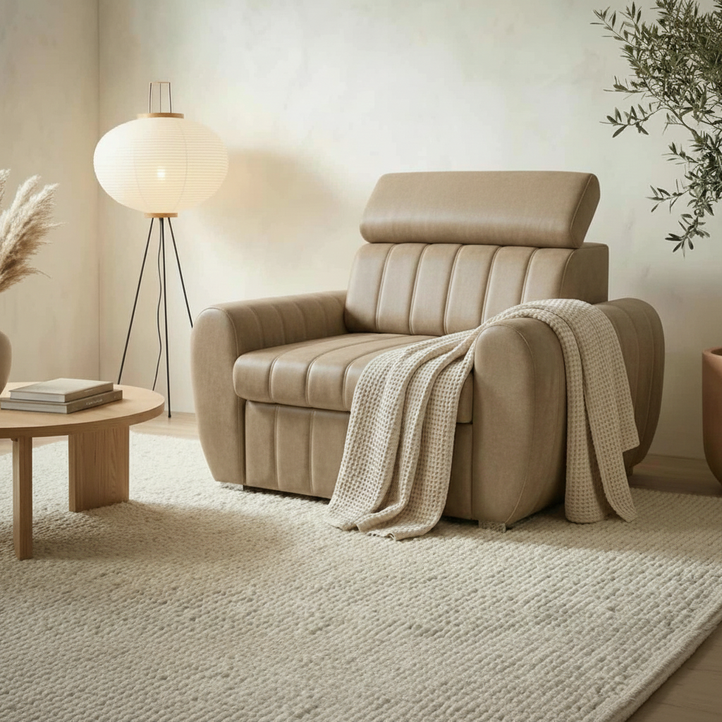 FOTEL AVERTI SKÓRA NATURALNA to propozycja dla osób, które cenią luksus, wygodę i funkcjonalność w jednym. Model idealnie sprawdza się w mniejszych salonach, pokojach gościnnych oraz gabinetach, ponieważ łączy komfortowe siedzisko z praktyczną funkcją spania. Szerokość siedziska wynosi 80 cm, natomiast cała bryła z bokami ma 120 cm, co po rozłożeniu pozwala uzyskać powierzchnię spania 80 × 200 cm. Dzięki temu fotel oferuje pełnowymiarowe miejsce do wypoczynku.