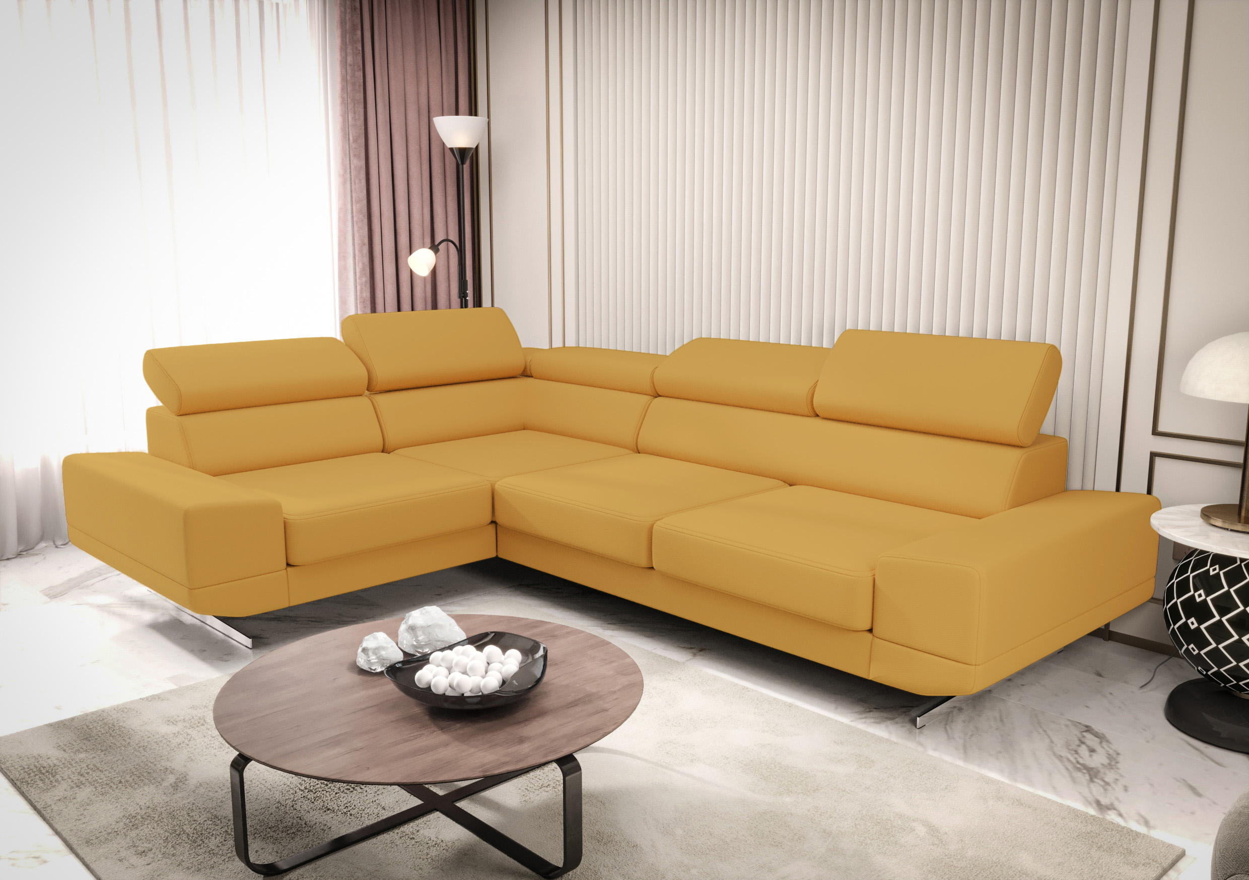 Mebel wykonany w skórze naturalnej z limitowanej edycji w odcieniu żółtego. Strona lewa (jak na zdjęciu)