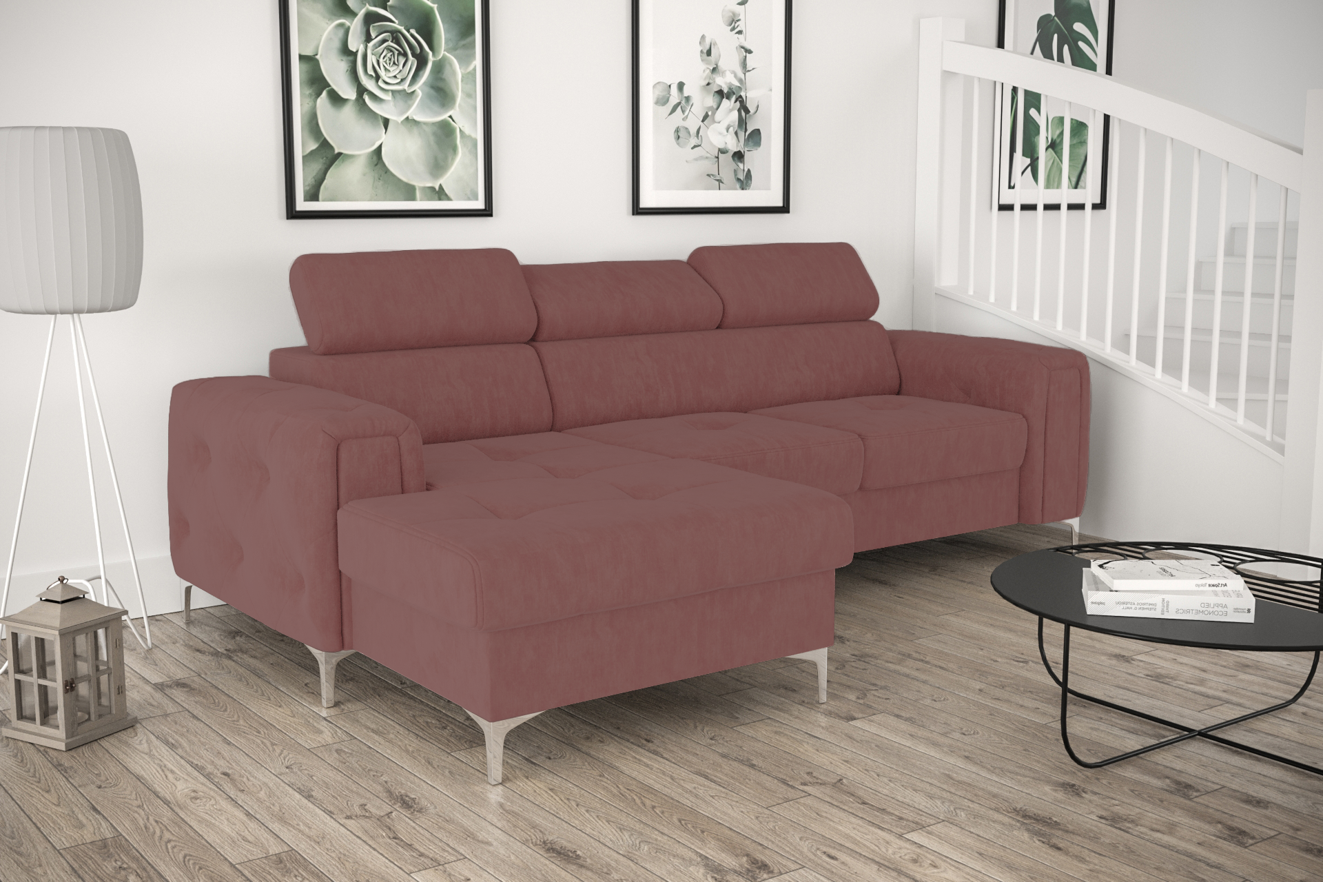 MEBEL WYKONANY W TKANINIE T63 (ODCIENIE CIEMNEGO RÓŻU) W WERSJI LEWEJ