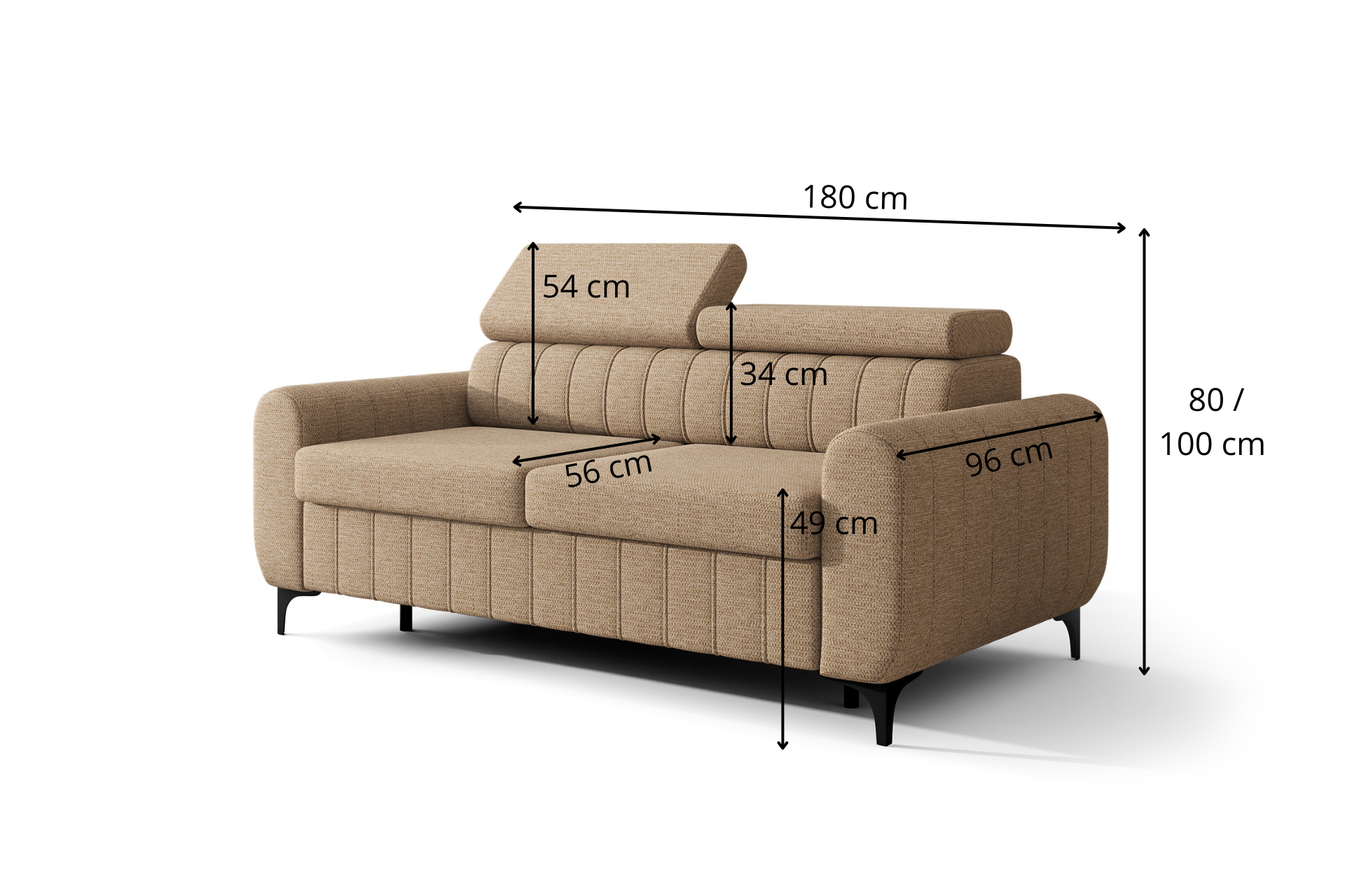 Główną zaletą sofy Zoya jest zastosowany w niej włoski stelaż z funkcją spania. To zaawansowany system, który umożliwia szybkie i łatwe przekształcenie jej w komfortowe łóżko. Rozkładanie jej jest banalnie proste. Po rozłożeniu w tak małej sofie mamy sporą przestrzeń do spania, bo aż 122 x 192 cm. Wygodny materac zintegrowany z całością, zapewni maksymalnie komfortowy odpoczynek. Dodatkowym atutem tego stelaża jest jego wysokość po rozłożeniu, która ułatwia wstawanie. Wybierając ten model inwestujesz w trwałość i możesz mieć pewność, że mebel posłuży Ci wiele lat.